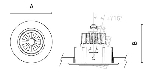 | Codice | Ottica | Watt | Lumen | CCT | CRI | Controllo | A | B | C | |